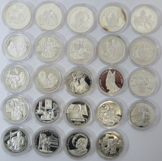 Zestaw 24 medali z Janem Pawłem 2, srebro + kaseta + certyfikaty