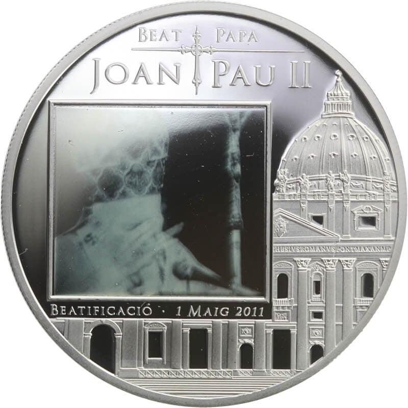 Andora - 5 dinarów - beatyfikacja Jan Paweł ii - 2011, Srebro