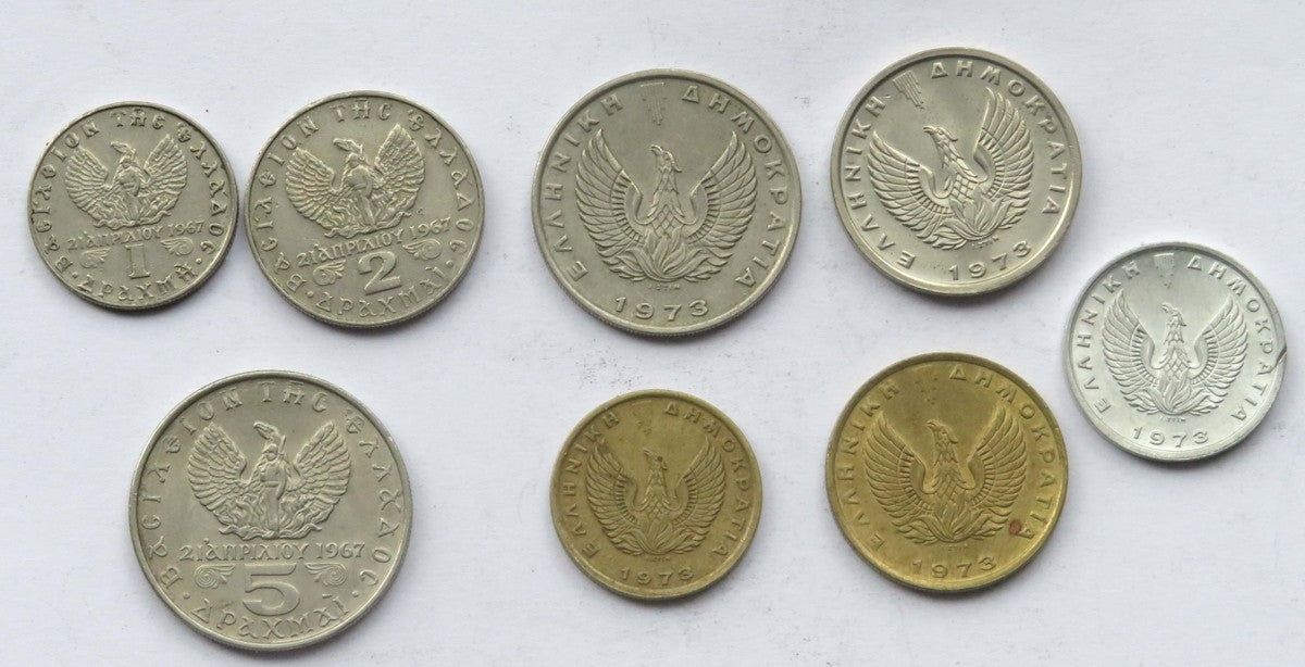 Grecja - Konstantyn II/okres Junty, 1-10 drahm i 20 lept, 1973 r.