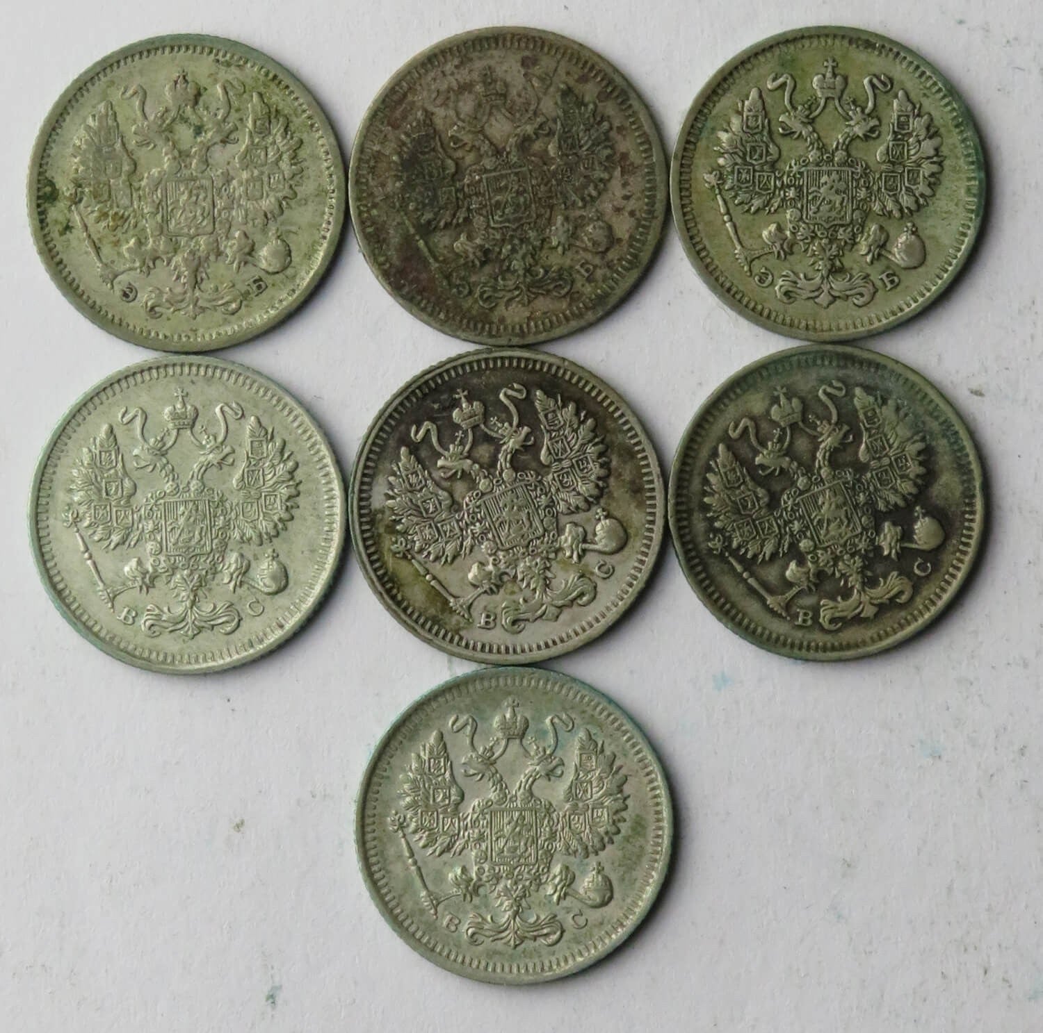 Lot, Rosja carska, zestaw 7 x 10 kopiejek, 1906-1915