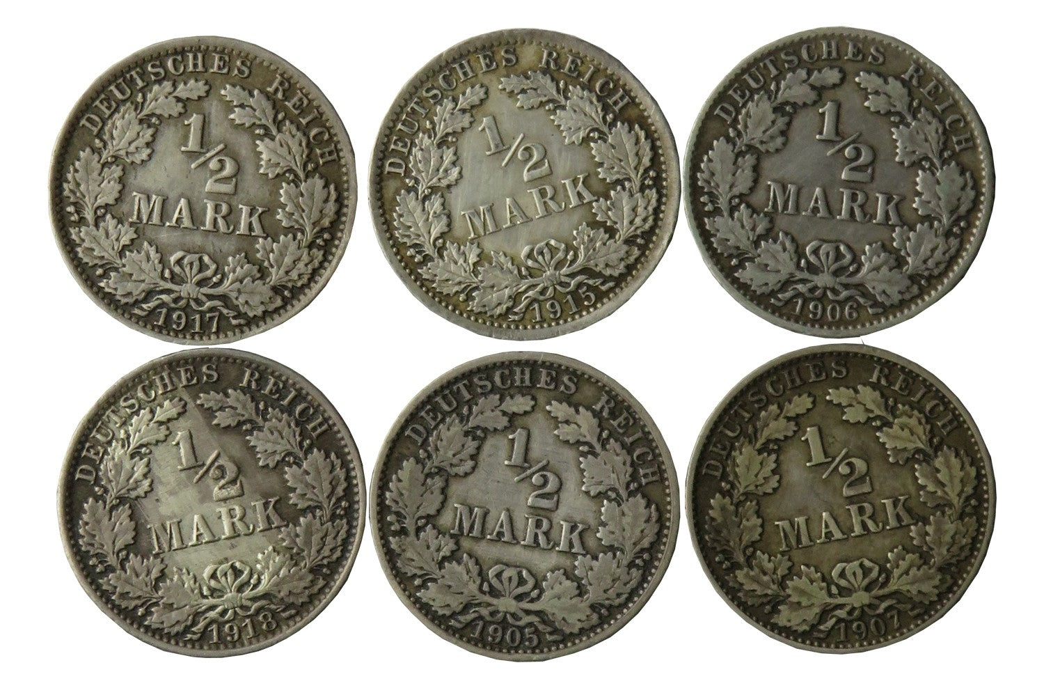 Niemcy, 6 x 1/2 marki, różne roczniki i mennice