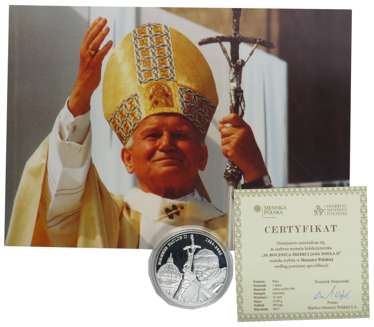 Niue, 1 dolar10 rocznica śmierci Jana Pawła II, Srebro 999, 15g