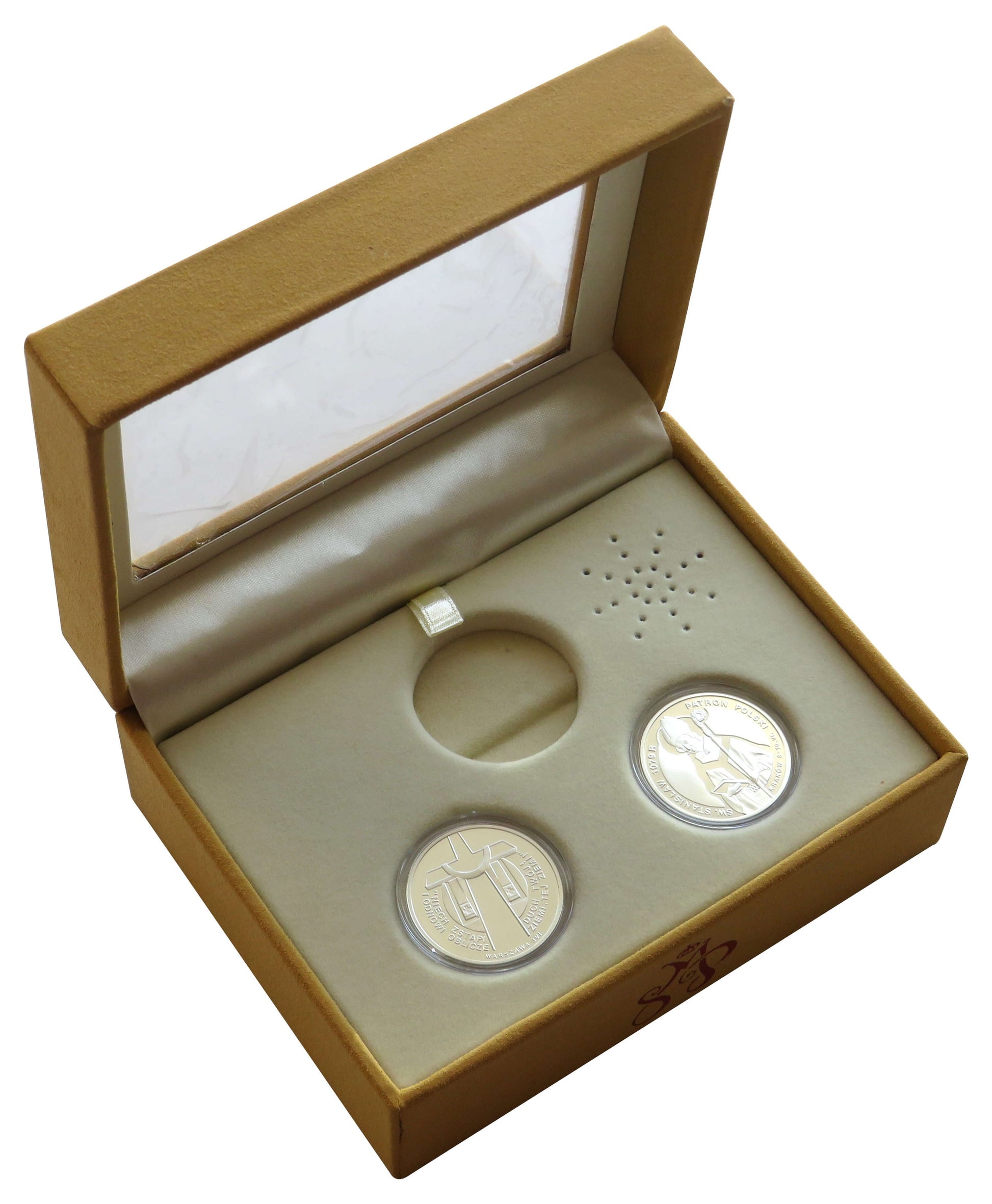 Pozytywka (grająca Barkę) z 2 srebrnymi numizmatami