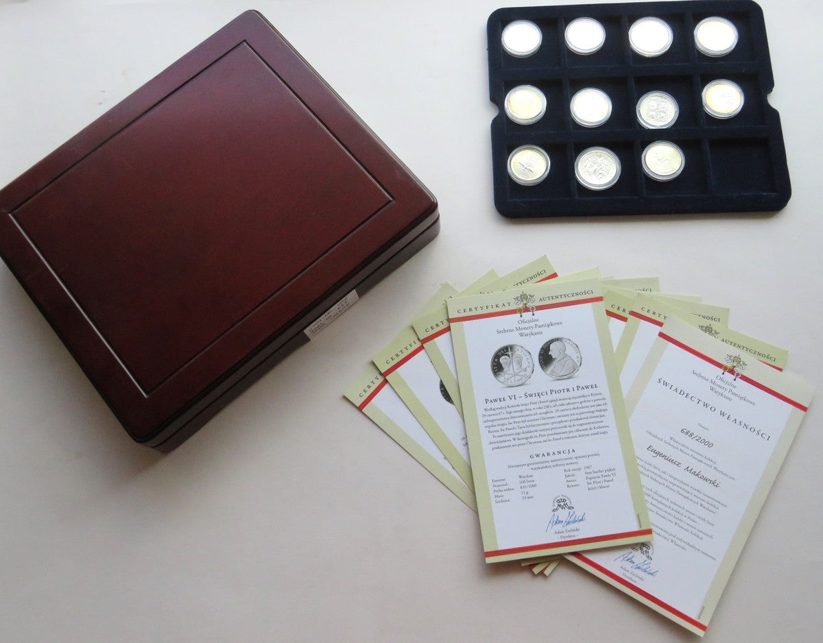 Srebrne monety Watykan, 11 sztuk, certyfikaty, Jan Paweł II