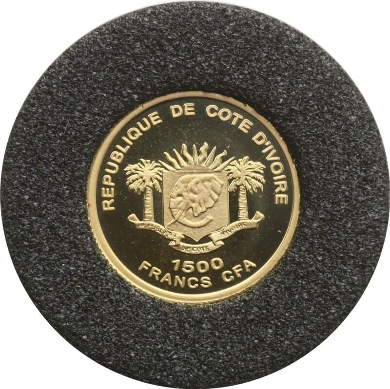Wybrzeże Kości Słoniowej 1500 franków, 2007 Fryderyk Chopin, złoto Au