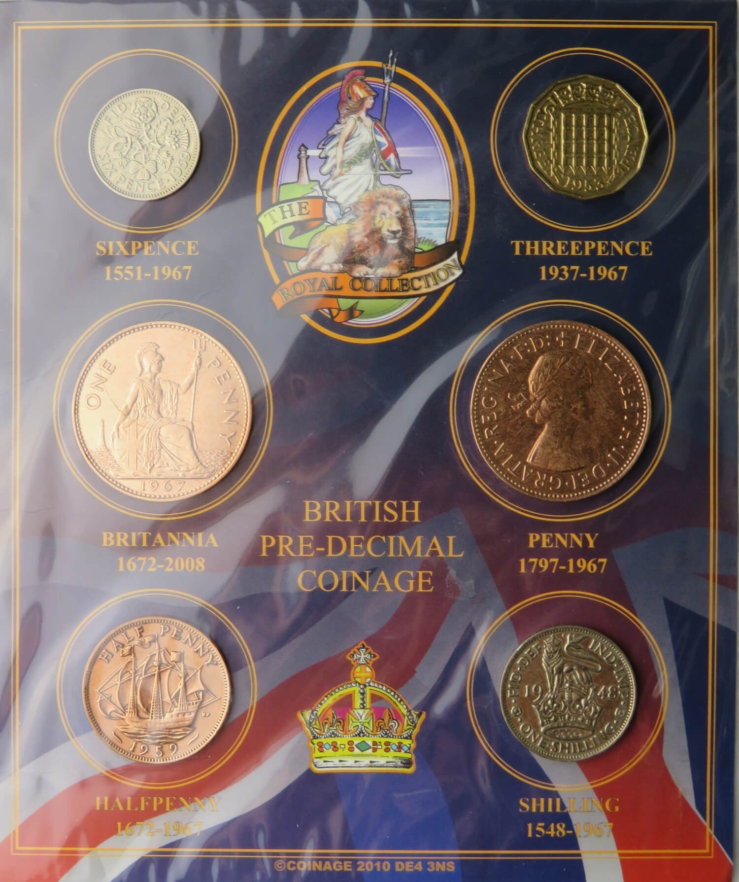 Zestaw brytyjskich monety sprzed systemu dziesiętnego (pre-decimal)