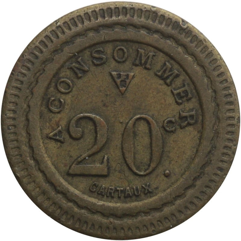 Żeton żywnościowy II wojna światowa, Francja 20 Consommer